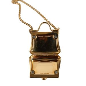 Gorgeous brand new with tags, 100% Authentic Dolce & Gabbana golden necklace was complemented by a pendant in the shape of an iconic accessory. The pendant can be opened and put inside a small object.