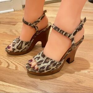 Dolce & Gabbana Cheetah animal print wood sandals platform open toe 39/8