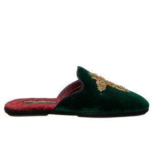 Dolce & Gabbana - Crystal Gold Cross Shoes Slipper Mules BRAMANTE Emerald Green