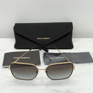 Dolce & Gabbana DG 2242 13348G Black Gold Metal Square Sunglasses Gray Gradient