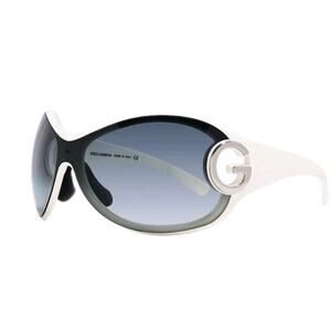 One from the classic and timeless collection from the house of Dolce and Gabbana, these shield sunglasses are so distinctive of their style and look. Constructed in white acetate frame, these sunglasses feature a silver tone metal cut out D on one side and G one the other side of temples and completed with crystal embellishments that are sure to stand out.