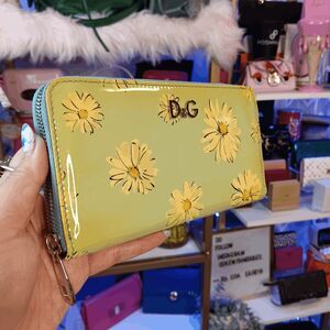 Dolce & Gabbana DG Logo Green Floral Print Around Zip Long Wallet Organizer Leather