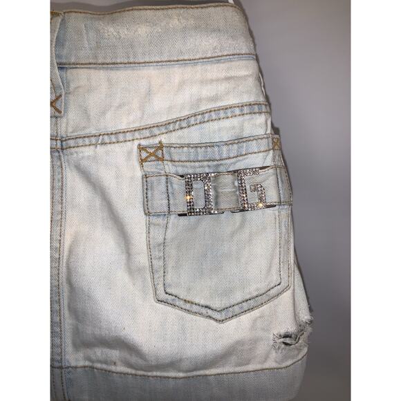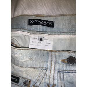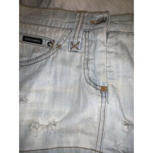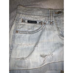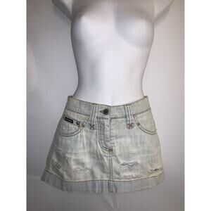 Dolce Gabbana D&G vintage 2000s distressed blue denim micro mini skirt size 38