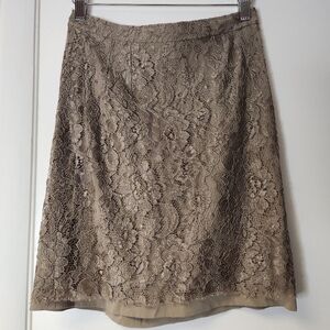 Dolce & Gabbana Delicate Lace Floral Stretched Lining Khaki Skirt Size 38