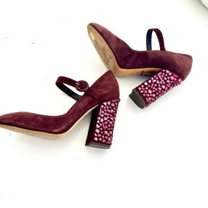 Dolce & Gabbana Elegant Plum/Purple with Jeweled Block Heel Pumps - Maryjane 40
