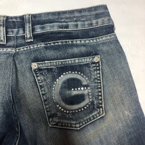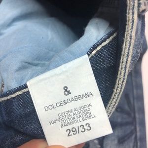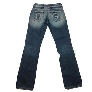 Dolce & Gabbana embellished jeans. Straight slight boot cut. Floral dye pattern and crystal embellishments. D & G raised embellishment on back pockets. Women's size 29/33. 14.25 inch waist across flat. 33 inch inseam. 8 inch rise