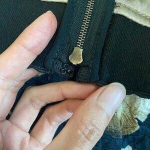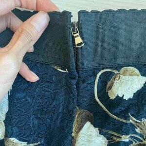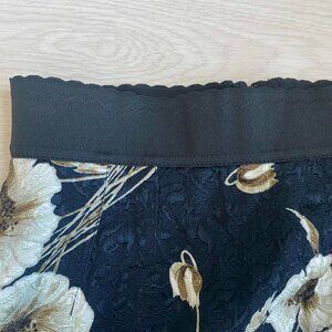Beautifully made floral mini skirt with subtle embossed detailing. In excellent pre-owned condition. Great for fall layering.