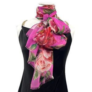 Dolce & Gabbana Floral Rose printed luxury lightweight silk scarf Pink