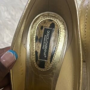 Beautiful authentic D&G Gold Heels with Gold DG buckle in front, very good condition, size 37, clean kept shoes with no box. True to Size.
