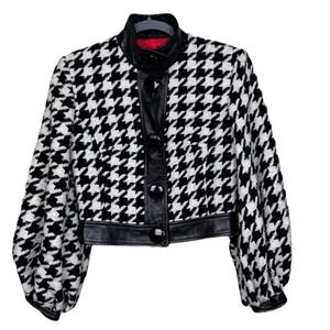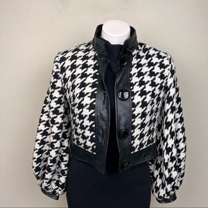D&G Dolce & Gabbana Vintage Leather Trimmed Houndstooth Cropped Jacket.