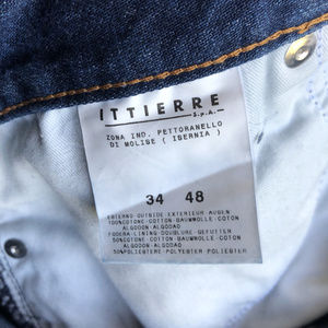 Size is 34 waist (16" across waist) x 34" inseam x 8.5" leg opening x 11" rise.