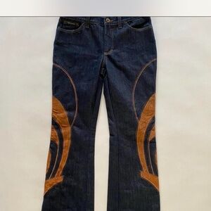 Rare vintage Dolce and Gabbana 90s/ Y2K mid rise bootcut denim jeans with suede embellishment. I bought them off depop and they are in great condition, they just did not fit me