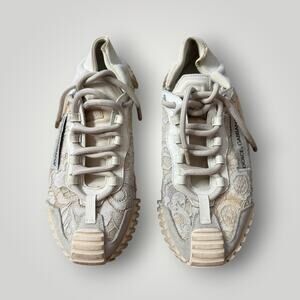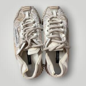 Dolce & Gabbana Lace Sneakers Beige Floral Made in Italy Women’s Size 40