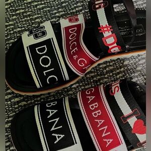 Dolce & Gabbana Leather Strap Black and Red Sandals size 8