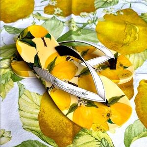 Pre-owned in good condition, rubber bottom with leather straps featuring Dolce&Gabbana logo. This collection features the iconic Lemon 🍋 print, celebrating Italian culture with vibrant motif inspired by a region of Amalfi Coast. 100% authentic- made in Italy. Size: 41 IT. Comes with a new dust bag.
