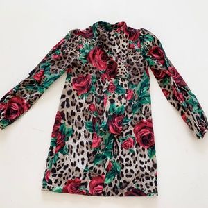 Dolce Gabbana Leopard /roses silk mini dress/bow