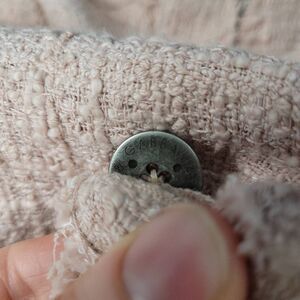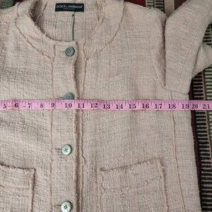 Dolce & Gabbana Light Pink Tweed Blazer Jacket, button front with branded name on back, unlined, frayed hems, lightweight Breathable Cotton Viscose blend, made in Italy.