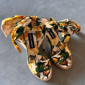 Dolce & Gabbana Lolita floral-print stretch-silk espadrille wedge sandals