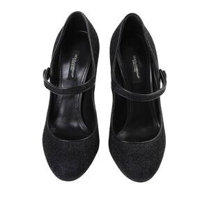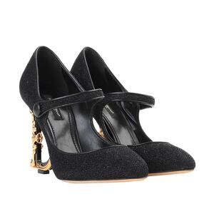 Dolce & Gabbana Mary Jane sculpted baroque DG heel Glitter pumps Black 36.5