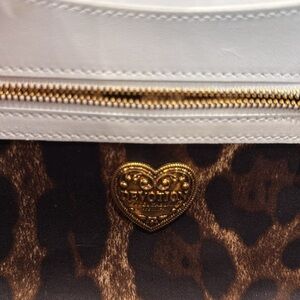 • Front flap with bejeweled branded heart hand-tooled from a metal alloy with pearl inlay