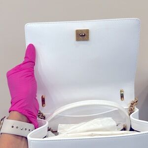 • Nappa leather lining with a pocket with a zipper featuring a Devotion slider