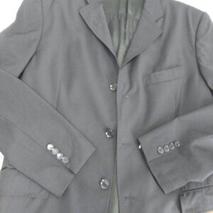 Good condition: It has some details as the picture shows. Broken button a small hole on the back of the right sleeve and small wear on the back. a mark on the front at the bottom and the inner lining a little uncooked.