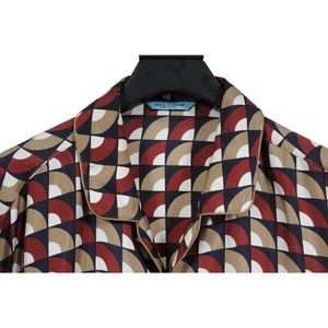 Dolce & Gabbana Mens Button Down Pajama Shirt 42 XL Red Tan Geometric 100% Silk