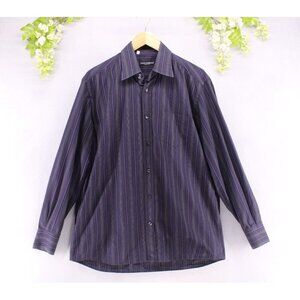Dolce & Gabbana Men's Purple/Black Striped Classic Fit Long Sleeve Sz 16