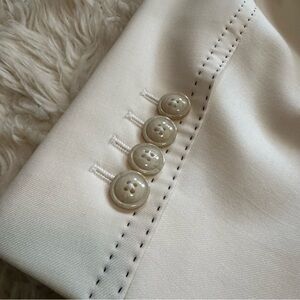 Jacket is in excellent used condition with a couple small noted flaws. Worn once for an event and it has 3 small marks as shown in the last two photos. One on the sleeve, a tiny cotton the upper sleeve and a tiny dot on the collar. Jacket has been dry cleaned.