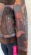 Chic leather jacket with a multicolor patchwork design. Features a zip front and stylish collar.