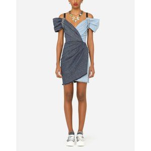Dolce & Gabbana Patchwork Denim Wrap Dress Mini Blue Italy 36 NWT $1975