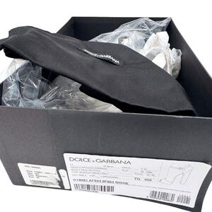 Stunning Brand New in Box with dust cover black and white brocade (fabric) Dolce & Gabbana sandals. Dress up or down, they'd look great with anything.