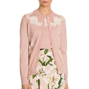 Dolce & Gabbana Pink / Nude Cashmere Silk Blend Cardigan With Lace