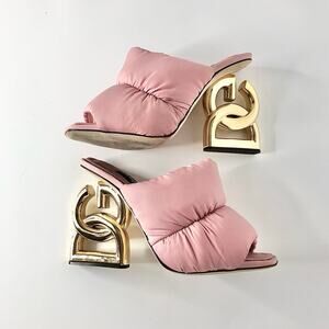 Dolce & Gabbana Pink Quilted Nylon DG Heel Slip On Puffy Mule Sandals 38