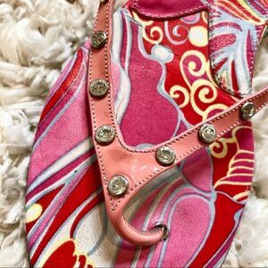 Dolce & Gabbana Pink patent leather Rhinestone Studded Thong Sandals 7.5