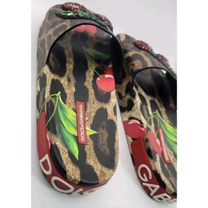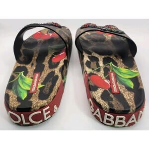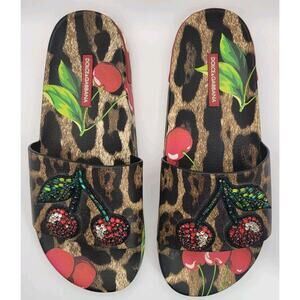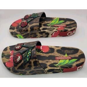 Dolce & Gabbana Portofino Cherry Leopard Embellished Slide Sandals Size US9 EU40