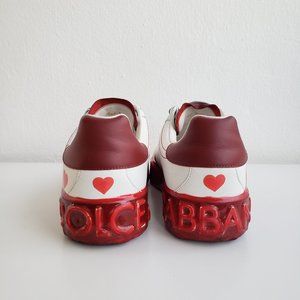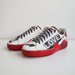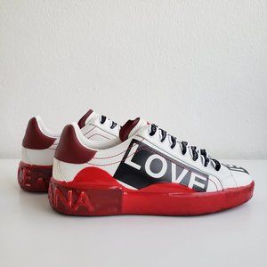 Dolce Gabbana Portofino Lace Red and White Love Low Cut Sneaker Size 6 US CS1587