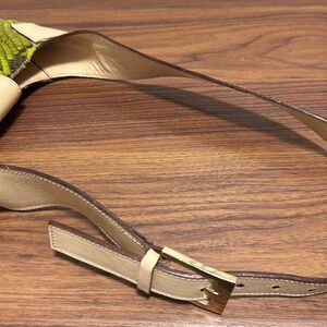 Dolce & Gabbana green python and neutral cream leather satchel shoulder bag. Features python leather, ajustable strap, Goldtone push lock closure, logo engraved metal hardware, internal zippered pocket. Made in Italy.