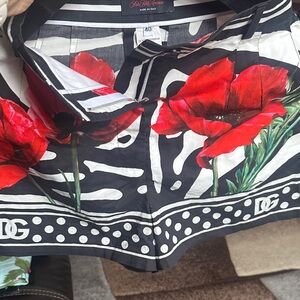 Vibrant shorts with striking red floral design. Features bold black and white accents. Size 40. This Dolce&Gabbana shorts Made exclusively for Sacks Fifth Avenue. Worn once