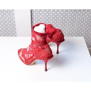Dolce & Gabbana Red Stretch Lace Pattern High Heel Booties (IT39.5) RRP $950