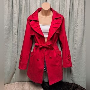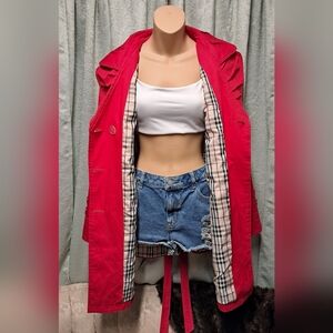 Youth size XL Red Dolce & Gabbana trench coat with plaid inner lining. The youth size is equivalent to an adult size small/medium. I wear a size m/l in tops and it fits me perfectly. This coat is in great yet always lightly loved condition. 🌎