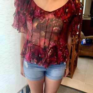 Dolce & Gabbana Ruffled Floral print silk blouse S