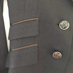 Dolce & Gabbana Satin-trimmed stretch wool and silk-blend blazer: perfectly tailored to your body and falls at a longer length. Beautiful lining and details make this the perfect addition to your work wardrobe. Brooch shown on the lapel is not included!