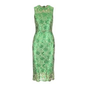 Dolce & Gabbana Semi Sheer Metallic Coated Lace Sleeveless Midi Dress 44 L