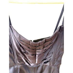 Stretchy fabric, boning, fully lined, back zipper and hook-and-eye fastening.