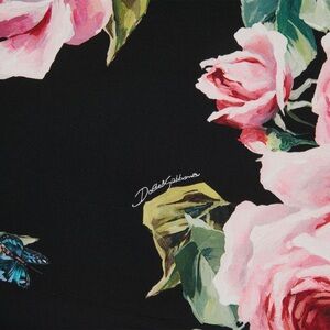 Dolce & Gabbana Silk Skirt Black Green Pink Floral Print Scalloped Grosgrain Zip