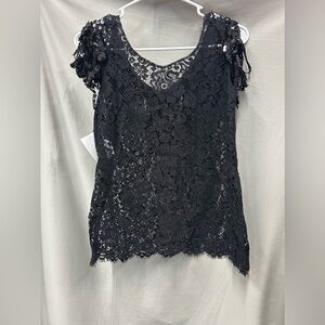 This elegant black lace top is perfect for any occasion. Its intricate design adds a touch of sophistication to your wardrobe. Pair it with your favorite jeans or a skirt for a chic look.