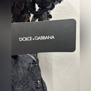 Dolce & Gabbana Size XXS Elegant Black Lace Top WITH Sequin Tassels