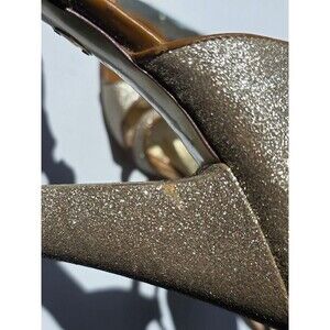 Slight wear, please review all photos for details. Leather straps in good condition and the heels are excellent. Minor scuffs on the glitter, but in locations that's harder to see. The leather accents are a olive-brown color but all you really see is the sparkle.