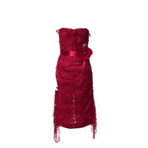 Dolce & Gabbana Spring 2006 Runway Look 1 Red Lace Dress. Brand New and has never been worn. Size IT40 = US4 Has a built-in strapless white eyelet balconette bra. Made out of gorgeous red lace.
